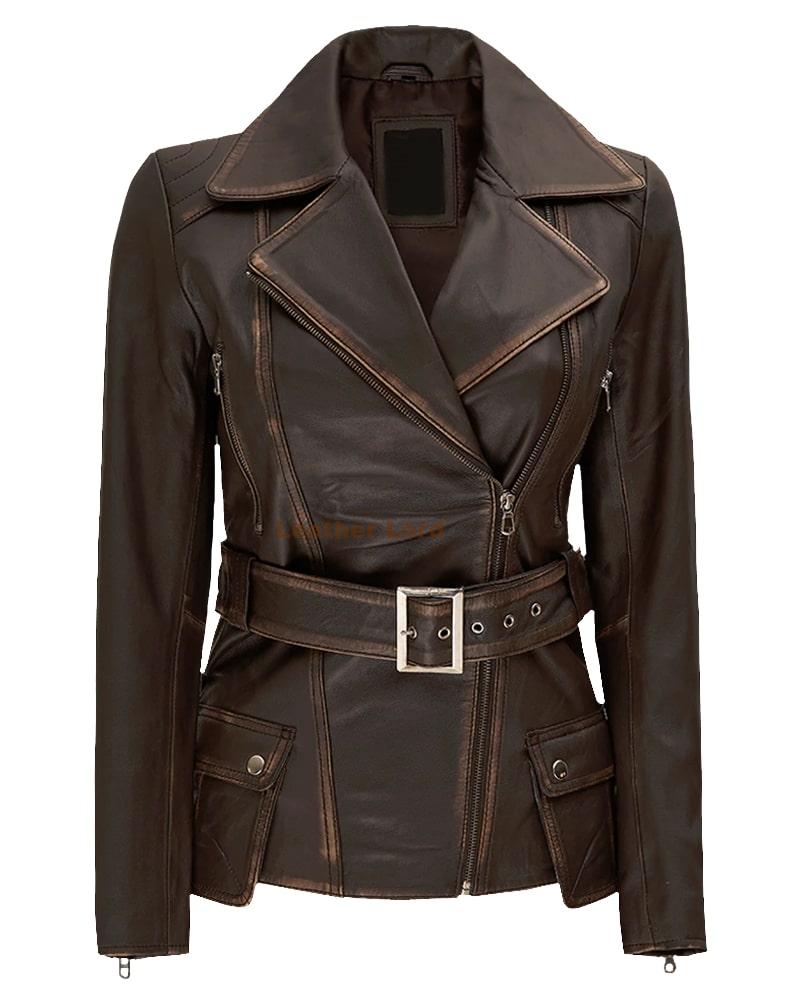 Not just for bikers, the Women’s Distressed Brown Long Biker Leather Jacket is versatile enough to be paired with any outfit. From casual looks with jeans and a t-shirt to more edgy combinations with dresses or skirts, this jacket elevates any outfit. Its rugged design gives it a cool, effortless vibe that works with almost any wardrobe.